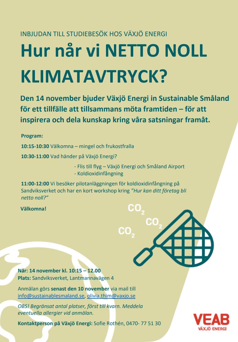 Idag välkomnar vi er medlemmar till studiebesök och för en diskussion på Växjö Energi.Vi får möjligheten att besöka anläggningen med koldioxidinfångning och får ett tillfälle att mingla.